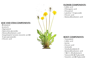 Tandem liquid chromatography and mass spectrometry analysis of dandelion have revealed rich sources of β-carotene, which protects cells from oxidation and cellular damage [29]. Recently, biochemical analysis identified chicoric acid (CRA) as the most abundant component of dandelion, with a polyphenolic amount of 34.08 ± 1.65 g/kg in Taraxacum officinale leaves and stems [30-32]. The concentration of polyphenols is higher in flowers and leaves than in stems [33]. There is also considerable seasonal variation; methylsterols are highly present in the winter, while sitosterol and cycloartenol esters are more prevalent during periods of extensive sun exposure [34].