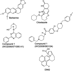Cilostazol is a selective inhibitor of phosphodiesterase-3 (PDE3) that shares structural similarities with the compounds shown in Table 1 and Figure 4. One of the striking effects of this compound is the enhancement of Thr172 phosphorylation and activity of AMPK in human umbilical vein endothelial cells. This activation is followed by downstream phosphorylations of ACC and eNOS. Cilostazol restores vascular endothelial cell function in diabetic rats by PDE3 inhibition [137]. In a study on the effects of cilostazol on thrombospondin-1 expression in hearts of streptozotocin-diabetic rats, the investigators reported that a 4-week treatment reduced blood glucose levels significantly from 22.1 to 16.7 mM [138]. Others have shown that cilostazol ameliorates metabolic abnormalities in diabetic mice or rats via activation of PPARγ and the suppression of inflammatory markers [139]. This drug also improved arterial compliance in patients with peripheral arterial disease while also improving their lipid profile [140]. Further clinical observations and trials will determine the efficacy of such auxiliary antidiabetic effects this drug may possess.