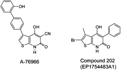 Figure 8. Molecular structure of the thienopyridone derivative A769662 and Compound 202. |